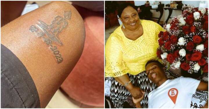 An ardent follower of Ayodeji Balogun, renowned as Wizkid, has paid tribute to Wizkid’s deceased mother by etching a permanent tattoo on their leg.